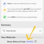 Knot Referral code is “MANZU”. Get ₹250 + Refer